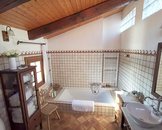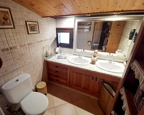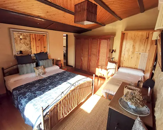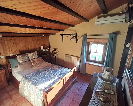 Les bigues de fusta centenàries al sostre, curosament restaurades, aporten calidesa i autenticitat. Comparteix un ampli bany amb «El Pi», estratègicament ubicat entre les dues habitacions.